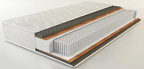 Кокосовое волокно, применяемое при производстве этого матраса, представляет собой пропитанные латексом (латексированные) термоскрепленные плиты. Высокое содержание латекса (50%) обеспечивает материалу упругость и устойчивость к нагрузкам. Экологичность, природная эластичность и хорошая воздухопроницаемость плит из кокосового волокна делают поверхность матраса жесткой и упругой.